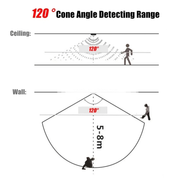 Угол обнаружения диапазона 120 градусов . Высокая и стабильная чувствительность, эффективно экономит энергию и повышает эффективность.