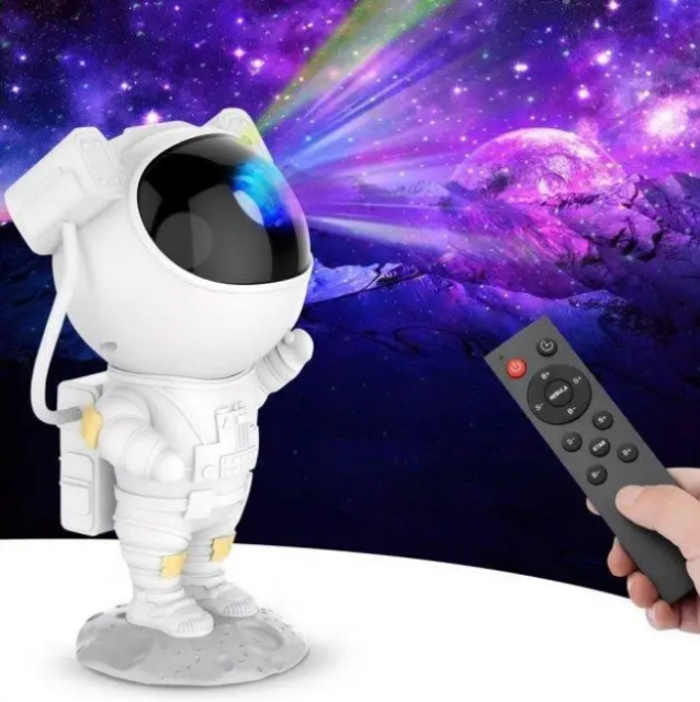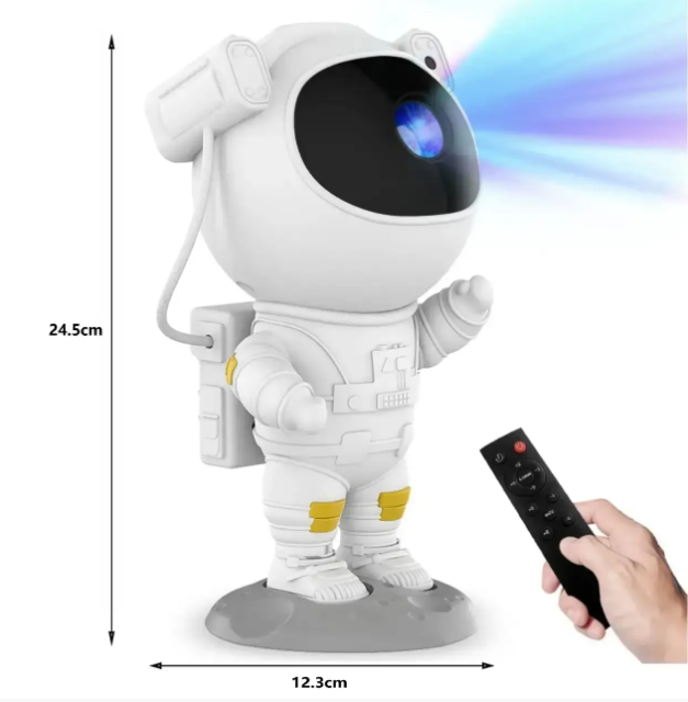 Вам решать, как вы хотите управлять звездным проектором! Благодаря пульту дистанционного управления вы можете управлять пультом из удобного положения или бесшумно выключать проектор, когда ваш ребенок засыпает. Однако, если случится так, что батарейки в пульте сядут – ваш ребенок не будет грустить – вы можете включить космонавта вручную!
