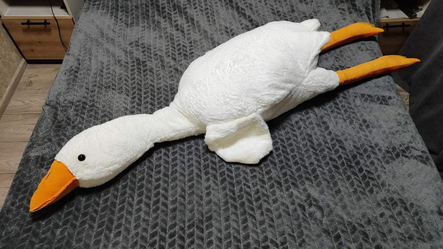 Мягкая игрушка антистресс гусь обнимусь может стать хорошим другом для ребенка, который любит обнять мягкую игрушку во время сна или игры. Мягкий и уютный живот вполне может заменить подушку. Игрушка приятна на ощупь, ее можно использовать как удобную мягкую игрушку-подушку антистресс или как валик для спины и головы. С ней приятно обниматься и засыпать. Изделие можно использовать как интерьерную игрушку. Установите этого плюшевого гуся в свое любимое кресло, уголок, кровать или диван, как Вам нравится.