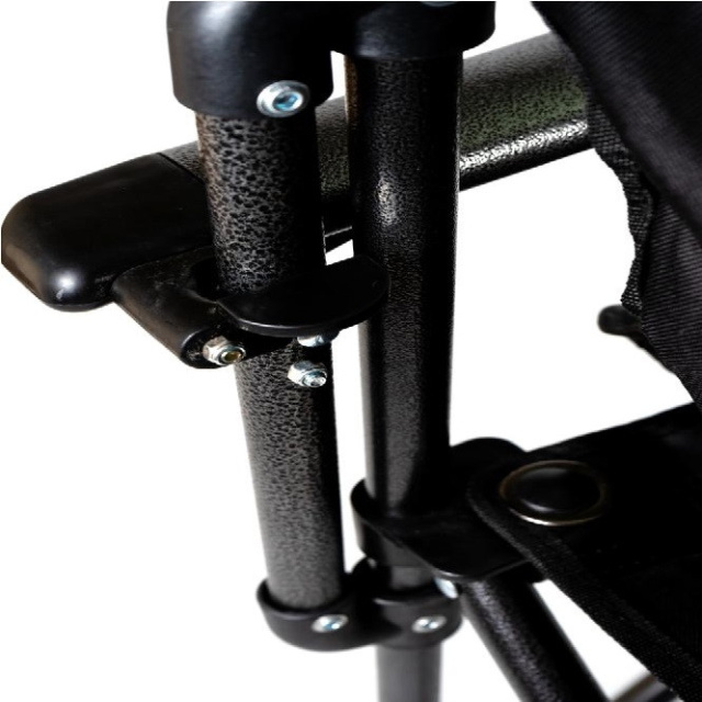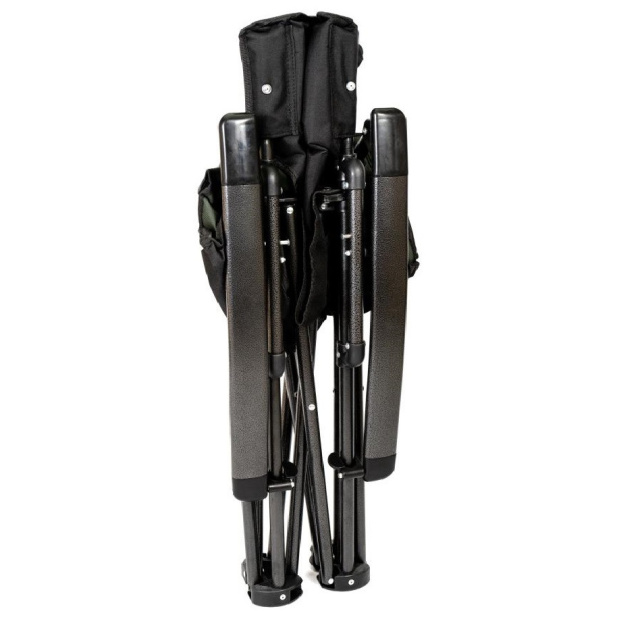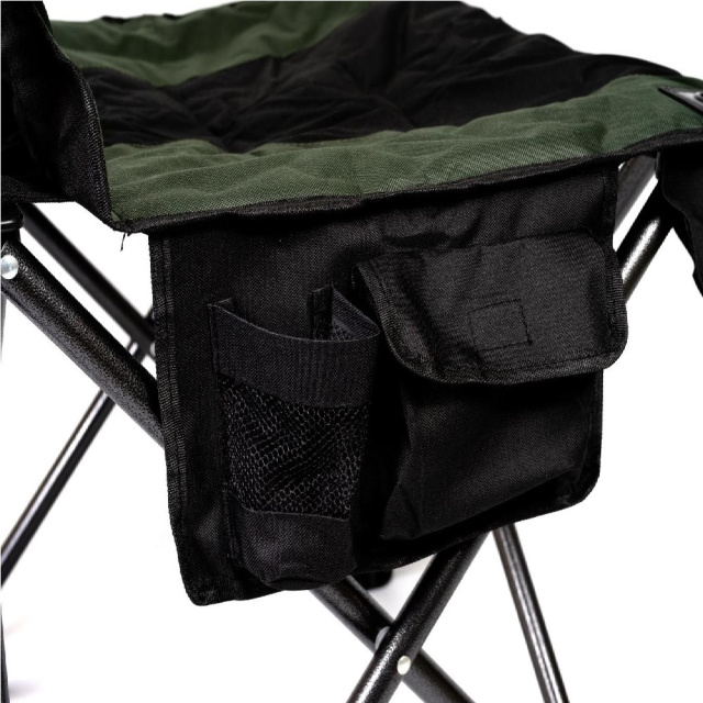 Раскладывается кресло просто, подлокотники в задней части фиксируется, для большей жесткости и надежности конструкции . В собранном положении кресло хорошо фиксируется и, благодаря конструкции, очень устойчиво. Перевернуть кресло практически невозможно, широко расставленные опоры имеют и достаточно большую площадь поверхности, чтобы ножки не могли погружаться в песок. Дополнительно предусмотрена сумка с двумя карманами сбоку, для хранения бутылки или мелочей.