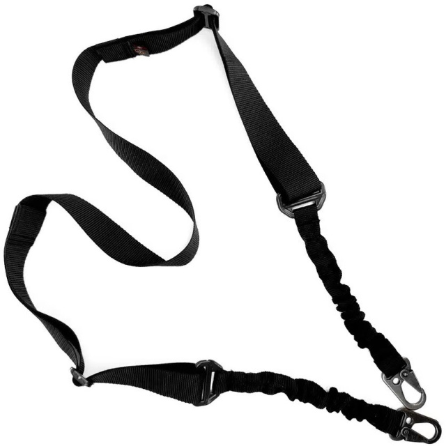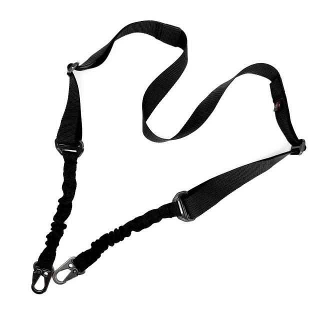 Тактический двухточечный ремень изготовлен из ременной ленты 4 см для большего комфорта при переносе оружия и безопасности при использовании. Имеет две точки фиксации и подходит для различных видов оружия. Длина регулируется двумя пряжками. К оружию крепится двумя металлическими карабинами. Эластичные вставки перед карабинами уменьшают нагрузку на плечо и снижают тряску при ходьбе и быстром перемещении. • Вес – 135 г. • Цвет –черный