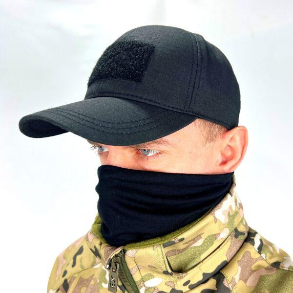 Бейсболка из крепкой ткани хорошо защищает от солнечных лучей. Твердый козырек. Объем регулируется липучкой. Впереди предусмотрено место для шеврона. Идеально подходит для военнослужащих, охоты, патрулирования. Ткань – Оксфорд Цвет – черный Стойка к ветру Размер универсальный.