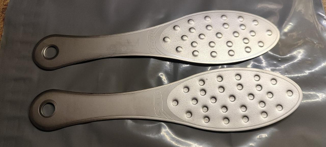 С одной стороны терка имеет немного выпуклую форму, она предназначена для уборки загрубевшей поверхности стоп.