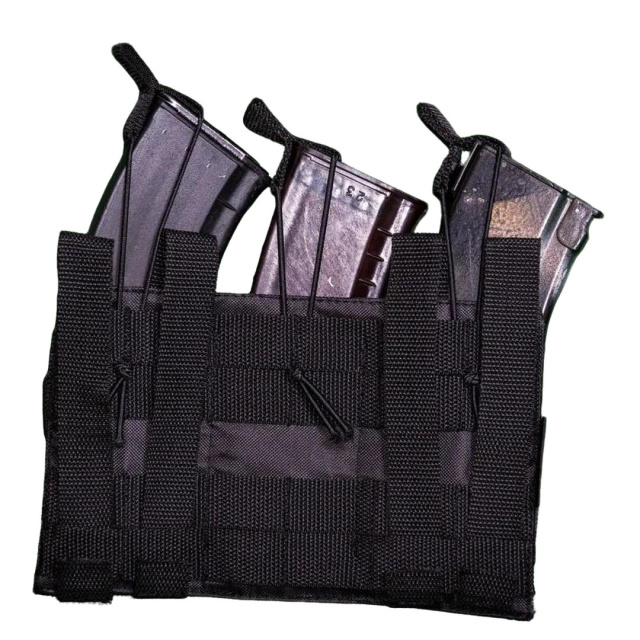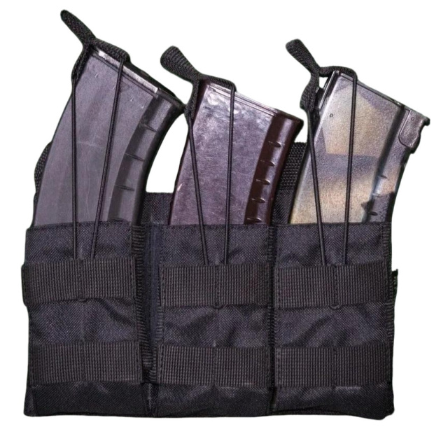 Предназначен для переноски на снаряжении в открытом виде 3-х автоматных магазинов. В этом подсумке можно надежно зафиксировать три рожка, которые не