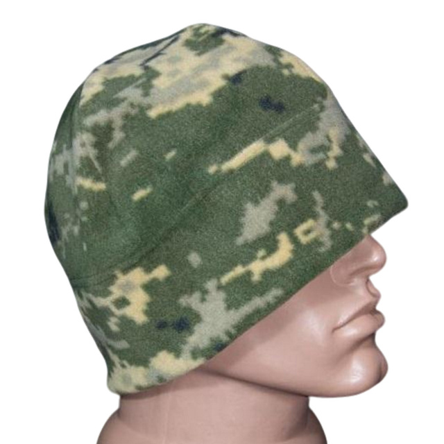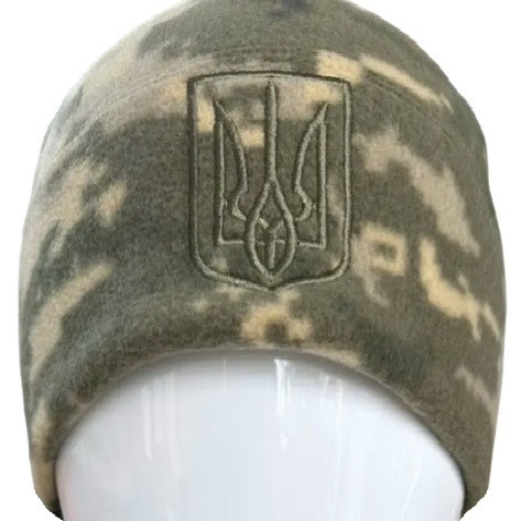 Тепла шапка з флісу щільністю 250 грм2. Має вишивку герб України.