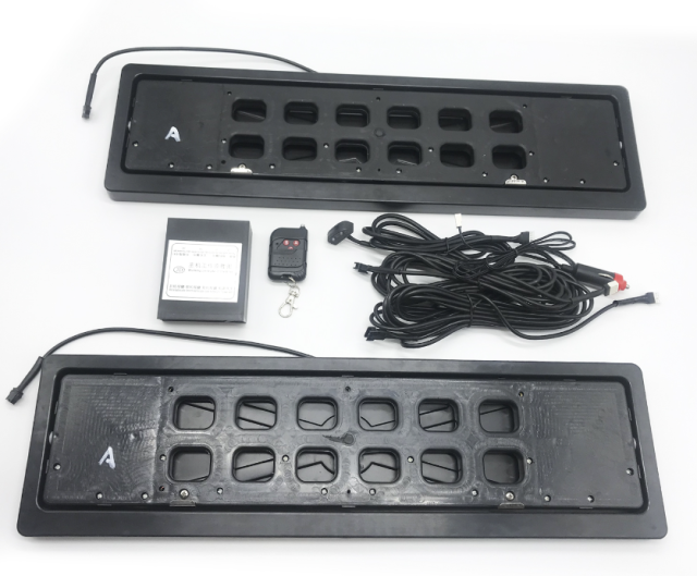 Процесс управления достаточно прост, в комплекте к рамкам входит пульт дистанционного управления и кнопка, которую можно установить в салон автомобиля. Возможна смена как переднего и заднего номера одновременно, так и по отдельности.