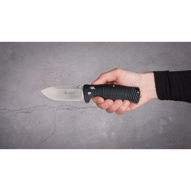 Складной нож Ganzo G720 в сложенном состоянии имеет длину всего 12 см, поэтому легко поместится в кармане. Клинок этого ножа получил заточку прямого типа. Его длина составляет 9 см, толщина со стороны обуха – 0,4 см. В качестве материала для ножа производители выбрали стойкую к коррозии хромированную сталь марки 440С. Ножи из такой стали легко затачиваются и долго остаются острыми. Твердость клинка в модели ножа Ganzo G720 оценивается в пределах +- 58HRC.