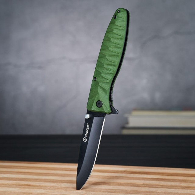 Нож Ganzo G620 представляет собой сложную модель, рассчитанную на использование в туристических условиях. Его отличительной чертой является черный клинок с заточкой прямого типа. Кроме того, что такой нож привлекает взгляд каждого ценителя качества Ganzo, черный цвет лезвия играет еще и практичную роль. Дело в том, что он совсем не мерцает.
