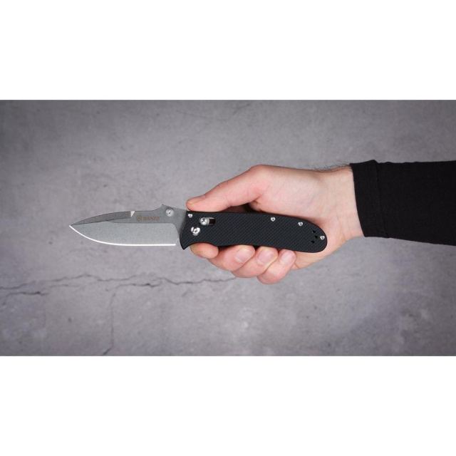 Туристический складень Ganzo 704 не только привлекательно смотрится, но и прекрасно сбалансирован. В рабочем состоянии размер ножа - 20 см, а на лезвие отведено 8.5 см.обрана Длина рукояти и текстурирование внешних панелей являются оптимальными решениями для удобного хвата и комфортной работы. На обухе есть насечки, обеспечивающие надежное сцепление рабочего пальца с обухом при сильном давлении на инструмент. Материал рукояти-композитный текстолит G10 наделен высокими показателями прочности и износостойкости.