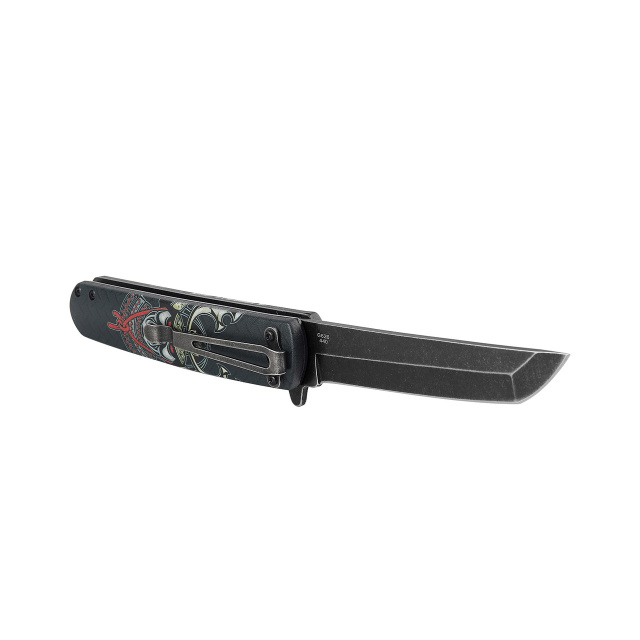 Нож Ganzo 626 приятно удивит не только фанатов простых и практичных EDC-ников, но также и тех, кто предпочитает определенную «изюминку» в модели. Здесь таков дизайн данного флиппера, для которого сделали 4 различных варианта рукояти. Можно остановиться на простом черном цвете, а можно выбрать что-то из предложенных экземпляров с рисунками. Это стильно смотрится, и поможет владельцу такого ножа выделиться из общей массы пользователей.