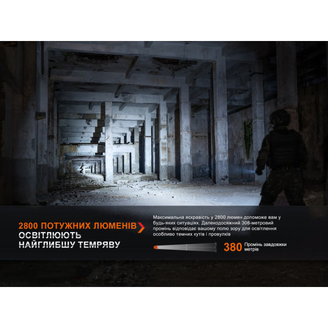 Турбо: 2800 лм – 380 м – 3 год. 30 мин.