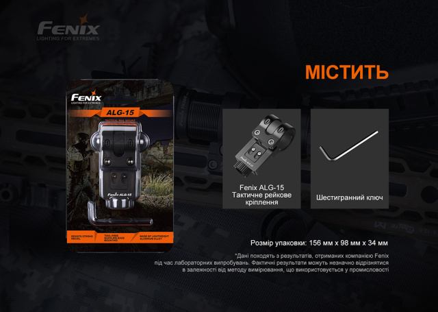 Комплектация: тактическое крепление Fenix ALG-15, шестигранный ключ.