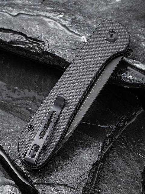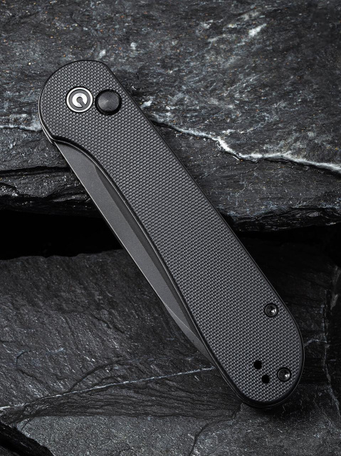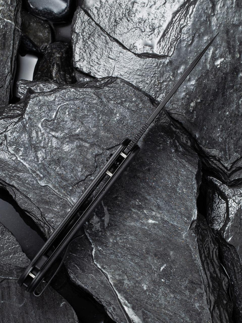 В основе клинка – сталь марки Sandvik 14C28N. Данный материал характеризуется устойчивостью к коррозии и легко поддается заточке. Это достаточно прочная сталь. Рукоятка ножа изготовлена из прочного и устойчивого к повреждениям материала G10. Он сочетает в себе стекловолокно и синтетическую смолу. Легкая текстура отлично лежит в руке и обеспечивает достаточный захват. Модель имеет шариковые подшипники. Темное покрытие поверхности лезвия.