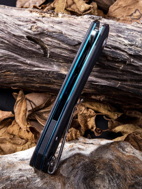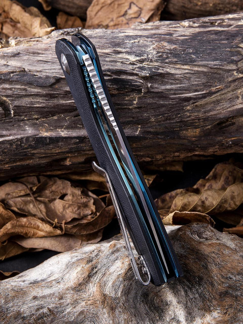 Рукоятка модели выполнена из стеклотекстолита G10. Прочный и легкий материал из стекловолокна и синтетической смолы. Легкая текстура отлично лежит в руке и обеспечивает достаточный захват. Есть комфортная клипса, чтобы можно было подвесить нож на кармане, рюкзаке, прикрепить к поясу.