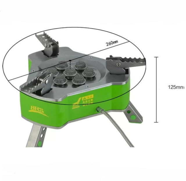 За удобство эксплуатации отвечают три складни для посуды и три металлические ножки. Зубчатая кромка стоек способствует надежному удержанию котелка на поверхности без скольжения, а ребристые ножки повышают устойчивость конструкции независимо от рельефа поверхности. После установки высота конструкции равна 125 миллиметрам, а диаметр — 265 миллиметрам, поэтому на горелку удобно устанавливается широкая посуда повышенного объема. В сложенном виде габариты модели составляют 210 х 95 миллиметров при весе 1.1 килограмм.