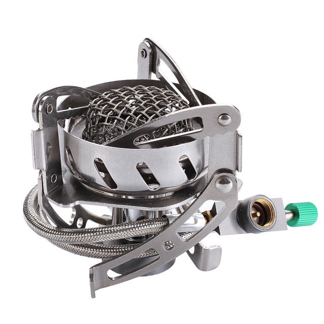 Горелка имеет ветрозащитную конструкцию, что позволяет забыть об использовании дополнительных защитных экранов. По бокам присутствует ряд небольших отверстий для подачи воздуха, а три складных стойки из стали имеют множество мелких зубчиков, препятствующих скольжению посуды во время готовки. Высота модели в установленном положении составляет 90 миллиметров, а диаметр достигает 170 миллиметров, поэтому аксессуар совместим с большинством котлов, предназначенных для туризма. За устойчивость конструкции отвечают три металлические ножки.