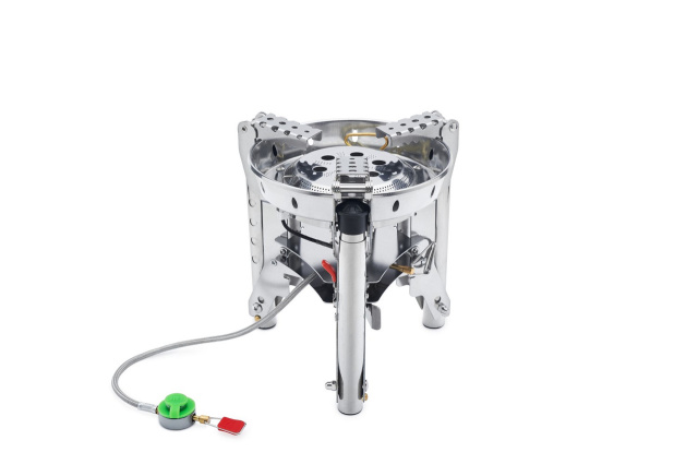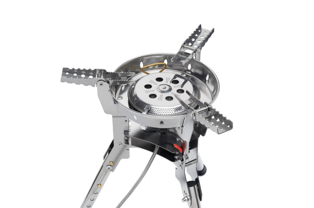 Газовая горелка BRS-69 – это воплощение мощности и портативности, актуальное для разогрева полуфабрикатов и приготовления блюд с нуля в полевых условиях. Мощность модели достигает 4360 В, что позволяет быстро вскипятить воду, сварить суп и пожарить мясо или овощи. Большой диаметр горелки (304 миллиметра) в сочетании с двойными складными стойками с множеством мелких зубчиков позволяет минимизировать скольжение установленной посуды независимо от ее размера, будь то компактный походный чайник или объемный котел.