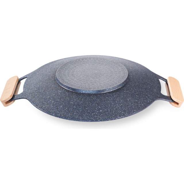 Размеры сковороды BRS-27B составляют 39 х 4 сантиметров, а диаметр поверхности для приготовления — 30 сантиметров. С ее помощью можно готовить разнообразные блюда в полевых условиях: стейки, мясо барбекю, жареные овощи, лапшу, оладки и прочее, а при надлежащей сноровке — даже выпечке. Безопасность эксплуатации обеспечивается за счет двух ручек, дополненных вставками из бука. Натуральное дерево является не только элементом декора – оно отличается низкой теплопроводностью и позволяет пользователю безопасно удерживать раскаленную посуду без риска получения ожогов.