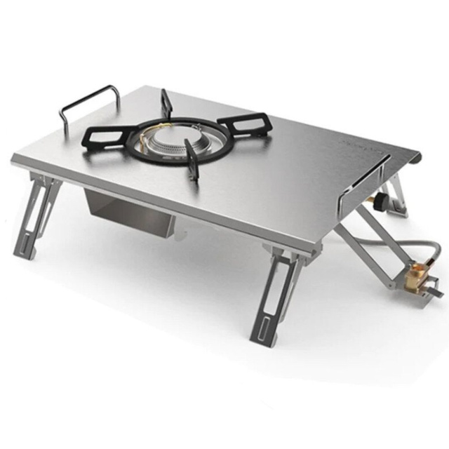 Описание горелки-стола кемпингового Naturehike NH20RJ001 Газова плитка Naturehike NH20RJ001 — универсальная плита с подставкой, которая пригодится для приготовления пищи на большую компанию в полевых условиях, в кемпинге или на даче. Подключается к газовому баллону с резьбовым соединением при помощи шланга. Плита совместима с любой туристической посудой. Имеет одну конфорку и место которое можно использовать как подставку для продуктов. В комплекте вместе с горелкой также идет чехол для удобства хранения и транспортировки. Оснащена регулятором пламени и кнопкой пьезоподжига. Характеристики Материал - нержавеющая сталь 304, алюминиевый сплав, медь Размер - 435x315x128 мм Размер в сложенном виде – 360x246x68 мм Мощность – 4500 Вт Вес - 2.2 кг