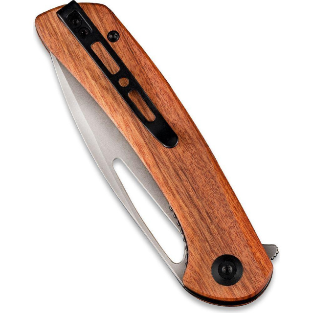 Описание складного ножа Sencut Honoris SA07ASENCUT Honoris - современный карманный нож от Sencut. Открыть нож быстро и просто можно с использованием флиппера или относительно большого отверстия для большого пальца. Благодаря шариковым подшипникам этот процесс чрезвычайно плавный. Когда нож открывается, лезвие фиксируется на месте надежным замком из нержавеющей стали. Складной нож Honoris выглядит современно благодаря сочетанию особой формы ручки и лезвия.Лезвие сделано из 9Cr18MoV, это нержавеющая сталь, которая характеризуются прочностью и долговечностью. Этот металл хорошо противодействует коррозии, демонстрирует хорошую износостойкость. По свойствам приближен к 420HC и имеет твердость закалки до 58 HRC. Отлично сохраняет остроту, процесс заточки быстрый и легкий. Длина лезвия составляет 88 мм.Рукоятка изготовлена из дерева гибуртии. Это прочная древесина с необычной текстурой. Дерево имеет красивый вид, достаточно легкое. Древесина без особых усилий может принять практически любую художественную форму благодаря своей текстуре. Такой натуральный материал на протяжении веков использовался как материал для ручек.Особенности:стальное лезвие с удлиненным отверстием для большого пальца;легкое открытие ножа с помощью флиппера;привлекательная деревянная ручка, которую удобно держать в руке;прочный стальной лайнерный замок для безопасности пользования;откидная черная нержавеющая клипса для удобного ношения.