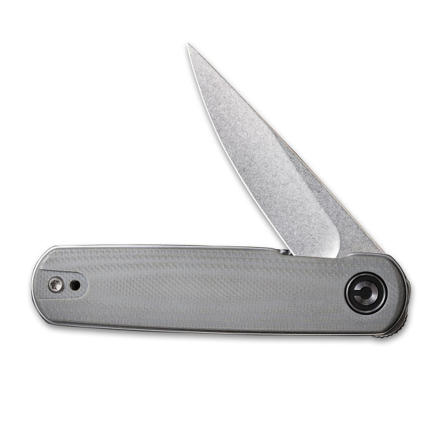 Описание складного ножа Civivivi Lumi C20024-2Заостренный нож выполнен с вогнутыми краями. Он красиво режет и прокалывает. Стоит отметить, что такой нож удобен для выполнения задач, требующих повышенной точности и аккуратности.Для изготовления лезвия используется шведская ножевая сталь Sandvik 14C28N. В ней гармонично сочетаются большой запас прочности, а также высокая твердость. Это позволяет долго сохранять остроту кромки, обеспечивается устойчивость к коррозии.Раскрывается нож с помощью фронтального флиппера, что выглядит как небольшое выступление на торцевой части. Фиксация лезвия осуществляется с помощью замка Liner-Lock. Механизм вращения лезвия обеспечивается благодаря подшипникам.Ручка классической формы позволяет удерживать нож как прямым, так и обратным хватом. Лайнеры ручки изготовлены из нержавеющей стали, накладки изготовлены из текстолита G-10. Этот материал характеризуется достаточно прочностью и легкостью, выполнен из стекловолокна с добавлением синтетической смолы. Имеет приятную противоскользящую фактуру, поэтому красиво лежит в руке, обеспечивается достаточное сцепление.Съемная стальная клипса может быть установлена в двух положениях для более комфортной носки.В раскрытом виде полная длина моделей Lumi C20024 не превышает 155 мм.Особенности:ручка защищена от влаги, ударопрочная;контакт ножа с пищей безопасен, в составе сплава лезвия отсутствуют примеси фосфора и серы;лезвие имеет элегантную форму и вращается на подшипниках;длина складного ножа чуть более 91 мм;толщина составляет 10,4 мм (с клипсой 15.2 мм) и ширина 20.7 мм.