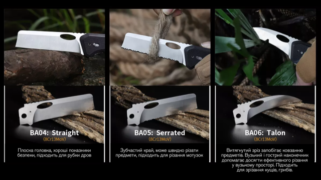 возможность замены клинка на один из 13 вариантов с другим профилем;