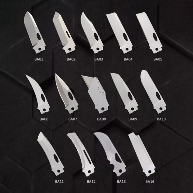 Чтобы изменить клинок; необходимо при закрытом инструменте сдвинуть в центр два блокиратора; находящихся в передней и задней сторонах рукоятки. Нож разбирается на три составляющие. После замены клинка на другую необходимо собрать части конструкции и зафиксировать их с помощью блокираторов; поместив их в исходное положение. Во всех клинках предусмотрено отверстие; что помогает быстро раскрыть инструмент одной рукой.