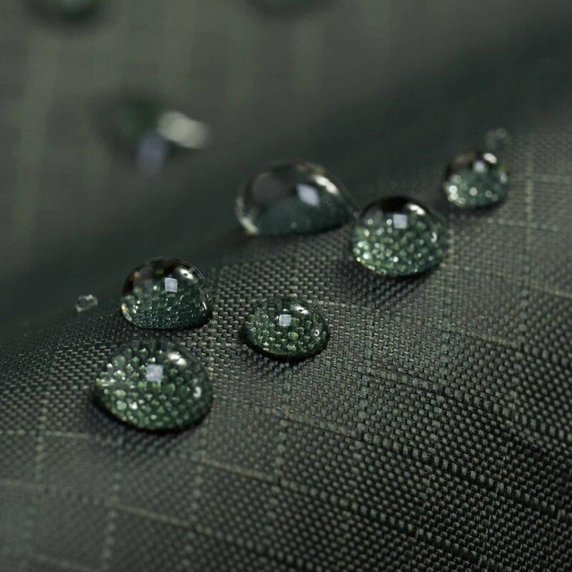 Дощовик шиється зі щільного синтетичного матеріалу — поліестеру кольору вохра. Завдяки спеціальному поліуретановому покриттю тканина набуває водовідштовхувальних властивостей, що досягає значення 2000 мм водяного стовпа. Матеріал також витримує гідростатичний тиск на рівні 5000 мм H2O.