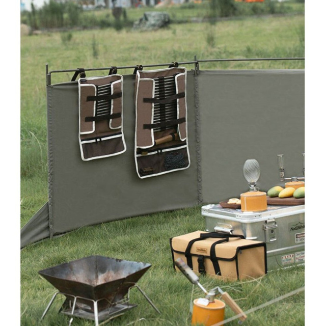 Важно отметить, что в органайзере есть дополнительные отделения для размещения креплений для палатки, молотка, веревки. Такая полотняная сумка также может быть размещена в палатке в развернутом виде, ремни позволят надежно закрепить ее в необходимом положении.