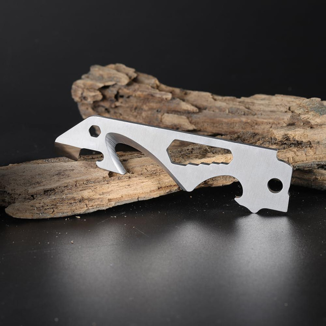 Инструмент BA15 - это многофункциональный элемент, который может выполнять 10 различных функций. Среди них: стропорез, открывашка для бутылок и консервных банок. В клинке есть ряд отверстий – они играют роль универсального гаечного ключа под болты и гайки распространенных размеров: 4, 5.5, 6, 7, 8 и 9 мм. С боку обуха имеется 6-сантиметровая линейка.