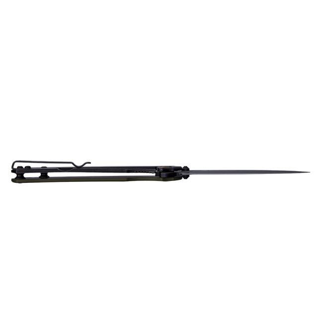 Конструкция может похвастаться вариативностью открывания: с помощью плавника или шпенька интегрированного с обеих сторон клинка. Длина ножа в открытом виде достигает 200 мм. Подшипник обеспечивает плавный ход лезвия, который в открытом положении фиксируется с помощью запорной пластины замка frame lock. Если ножом нужно выполнить грубую работу, модель предоставляет такую возможность благодаря ребристому упору для пальца. Товщина клинка в обуху становить 3.1 мм.