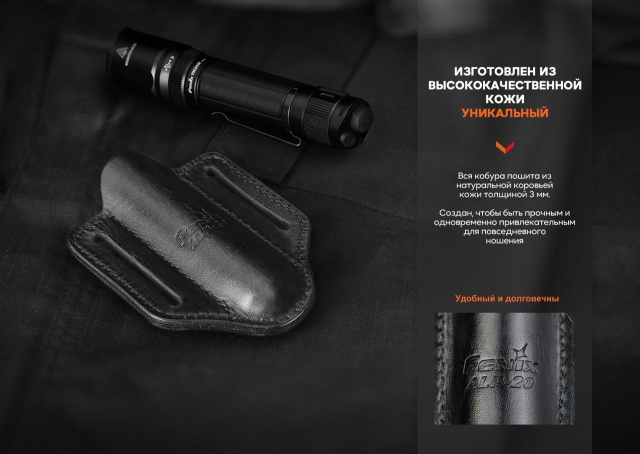 Чехол Fenix ALP-20 разработан таким образом, чтобы плотно удерживать фонарь внутри, предотвращая случайное нажатие тактических переключателей в хвосте или выпадение устройства во время активного движения пользователя.