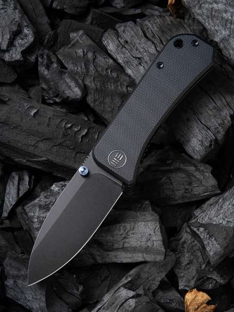 Модель имеет черную рукоять с плашками из стеклопластика G10, классического материала для многих EDC ножей. Шероховатая поверхность накладок делает удержание конструкции удобным, не давая ладони скользить, а износостойкость G10 гарантирует, что рукоять не треснет и не деформируется при температурных перепадах и механическом воздействии.