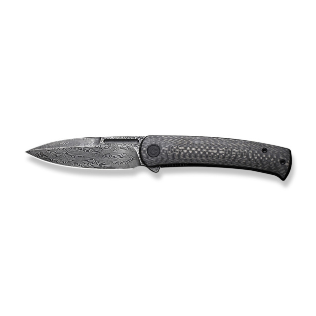 Описание складного ножа Civvivi Caetus C21025C-DS1:Элегантный дизайн EDC ножа Civvivi Caetus превращает инструмент в стильное дополнение повседневного образа. При этом модель обладает отличными показателями резки и эргономичной конструкцией, в которой сочетаются материалы высочайшего, премиального качества.Клинок изготовлен из дамасской стали с характерным узором на поверхности. Ее твердость находится в пределах 58-60 HRC. Эта сталь сочетает несколько видов металлов с разным содержанием углерода, перенимая их положительные свойства. В результате получается нержавеющий материал повышенной износостойкости и гибкости, что позволяет избежать появления повреждений на режущей кромке.Клинок длиной 88.4 мм имеет прямую заточку. Списообразная форма клинка spear point демонстрирует эффективность в колючих работах, а его толщина, равная 3 мм, предотвращает деформацию металла. Рифление на обухе предназначено для упора большим пальцем, чтобы ножом было удобнее выполнять задачи, требующие большой физической силы.Открытие конструкции осуществляется путем нажатия на стальной плавник. Civvi Caetus открывается мгновенно благодаря керамическим шариковикам. Тип запорного механизма – замок liner lock.За эргономику рукоятки толщиной 12 мм отвечает пара накладок из углеродного волокна (карбона) саржевого плетения. Среди положительных характеристик материала: прочность, невосприимчивость к воздействию прямых солнечных лучей, влаги, химических веществ. Края плашек закруглены, чтобы рукоять не намилала ладонь при длительной эксплуатации ножа.Осевой винт и клипса изготовлены из нержавеющей стали и имеют черное покрытие в тон карбоновой рукоятки. Клипса является однопозиционной.Полная длина модели достигает 202.9 мм, но в сложенном положении это значение уменьшается до 114.5 мм. Вес конструкции составляет 90.3 грамма.Характеристики:складной нож для повседневной носки;цвет – черный;клинок изготовлен из дамасской стали (58-60 HRC);форма клинка – spear point;тип заточки – прямой;запорный механизм – замок liner lock;плавное открывание и закрывание клинка благодаря керамическим шариковикам;материал рукояти – углеродное волокно саржевого плетения;полная длина ножа – 202.9 мм;длина клинка – 88.4 мм;товщина клинка – 3 мм;толщина рукоятки – 12 мм;длина в сложенном виде – 114.5 мм;вага – 90.3 г;является однопозиционная клипса из нержавеющей стали.