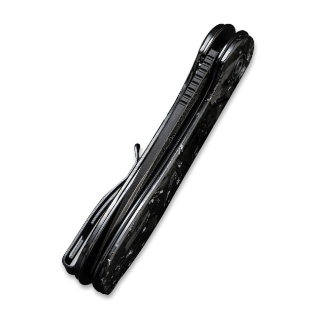 С правой стороны рукоятки есть черная клипса из стали. Вместе с ней складень весит 77.7 грамм.