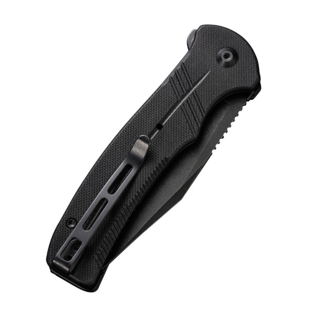 Описание складного ножа Civvivi Cogent C20038D-1:Нож Cogent C20038D-1 является частью линейки карманных инструментов бренда выпущенных в 2021 году. Данная модель считается одним из самых удачных воплощений EDC ножа, способного справиться с задачами разного уровня сложности. В пользу этого говорит функциональная форма клинка с прямым снижением линии обуха, эргономичная рукоятка с фигурными накладками и сбалансированный вес конструкции, равной 108.4 граммам.Длина складного инструмента в открытом положении составляет 200.1 мм, 88.2 мм приходится на клинок из шведской стали 14C28N компании Sandvik. К преимуществам данной марки относится высокая сопротивляемость износу и появлению коррозии, а также длительное удержание остроты режущей кромки. Финиш клинка - blackwash, что делает поверхность матовой и устраняет блики.Модель оснащена замком button lock. Чтобы открыть клинок, достаточно нажать на стальной плавник. Альтернативный вариант — нажать на упругую кнопку, расположенную над осевым винтом, и слегка встряхнуть запястьем до фиксации лезвия в рабочем положении. В основании осевого узла находятся подшипники с керамическими шариками.Рукоятка украшают накладки из стеклотекстолита G10 с плавными формами, которые делают удержание удобным независимо от типа хвата. Поверхность материала является немного шероховатой, поэтому конструкция не выскальзывает из ладони во время эксплуатации. Длина рукояти равна 111.9 мм.Клипса глубокой посадки зафиксирована в хвосте рукоятки. Ее положение можно менять под правую или левую руку.Характеристики:складной нож для ежедневной носки;цвет – черный;клинок из шведской стали Sandvik 14C28N нержавеющего типа;твердость стали – 57-59 HRC;отделка клинка – blackwash;тип заточки – прямой;замокдка lock;материал рукоятки – стеклотекстолит G10;общая длина – 200.1 мм;клинок длиной 88.2 мм;товщина обуха – 3 мм;длина сложенного ножа – 111.9 мм;толщина рукоятки – 13 мм;вес – 108.4 г;есть клипса глубокой посадки.