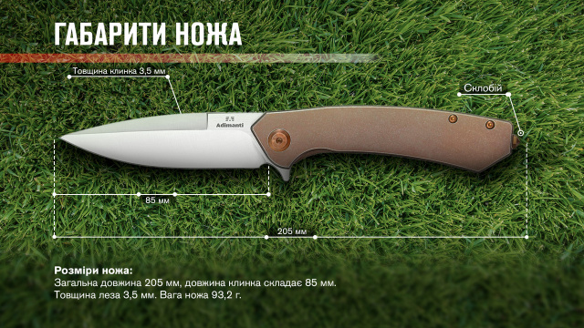 Опис складаного ножа Adimanti by Ganzo (Skimen design) титанового, коричневого: