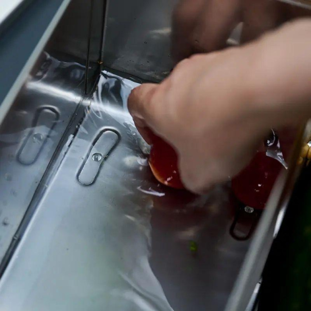 Мойка изготовлена из стали 304. Это нержавеющая марка с низким содержанием углерода, которая отличается прочностью и невосприимчивостью к появлению деформаций. Гладкая металлическая поверхность проста в очистке — достаточно несколько раз сполоснуть мойку под чистой, проточной водой и вытереть насухо перед хранением.