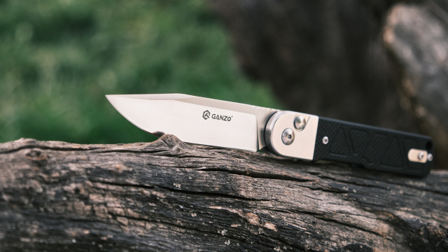 Материал клинка – сталь 9CR14, которая редко встречается в складных инструментах Ganzo. Это нержавеющая марка с высоким содержанием хрома и вспомогательными легирующими элементами в виде молибдена и ванадия, снижающими хрупкость и повышающими плотность металла. Твердость стали равна эталонным 59 HRC, поэтому клинок эффективно справляется с резкой материалов различной плотности.