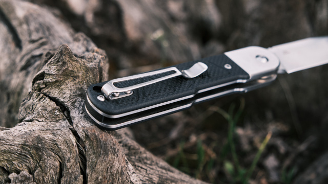 По обе стороны рукояти закреплены черные плашки из стеклотекстолита G10. Благодаря рельефной поверхности, материал не дает ладони скользить по конструкции. Кроме того, этот композит отличается износостойкостью, невосприимчивостью к температурным перепадам и воздействию большинства агрессивных сред, в том числе кислот, щелочей и жиров.