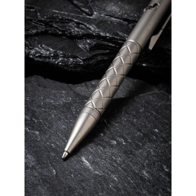 Размеры ручки такие: длина составляет 127.4 мм, диаметр корпуса – 9.7 мм, диаметр спиннера – 14.3 мм. Фрезерованная поверхность металла обеспечивает прочное удержание, а титановая клипса позволяет фиксировать ручку на одежде и носить ее с собой каждый день.