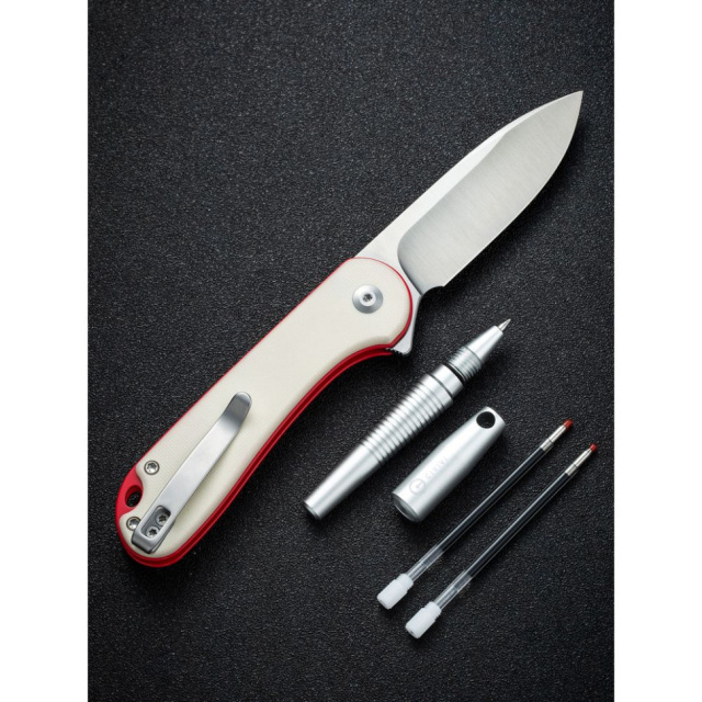 в наборе есть складень Civvi Elementum II Button Lock и тактическая ручка Civivi StellarQuill Pen с двумя шариковыми стержнями;