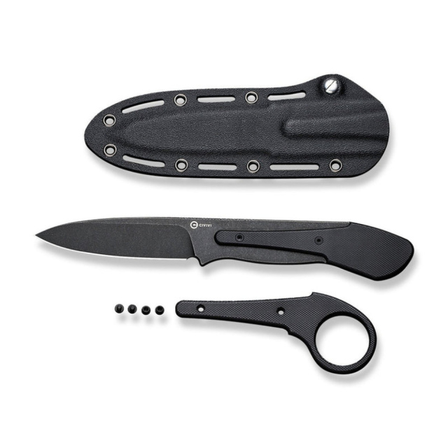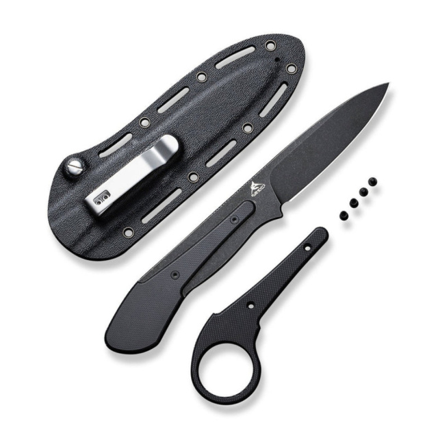Главная же особенность ножа Civvivi Varius – уникальная конструкция с возможностью кастомизации рукоятки с помощью 2 типов накладок на выбор: классических прямых или с хвостовым отверстием. Накладки входят в комплект вместе с двумя парами креплений, предлагая расширенное количество вариантов хвата рукояти. Материал накладок – стеклопластик G10 с шероховатой поверхностью, которая не дает ладони скользить по рукоятке.