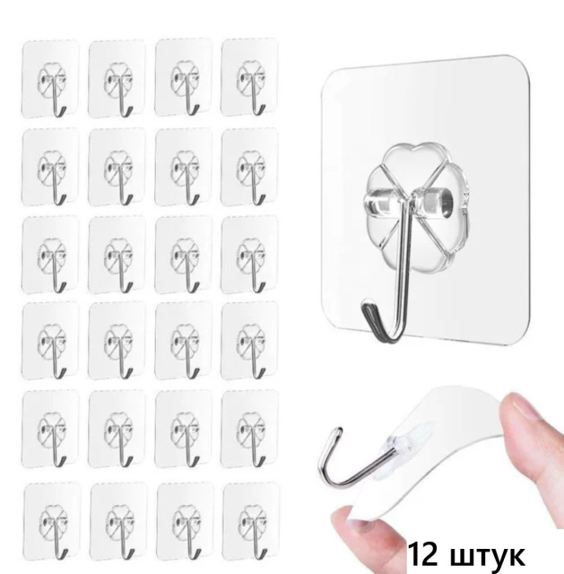 Набор самоклеящихся прозрачных крючков 12 шт. Водостойкий