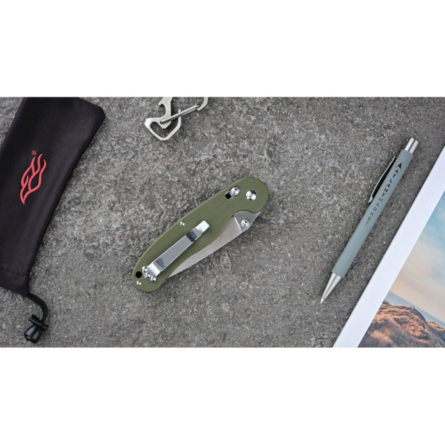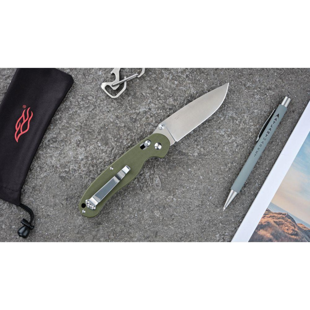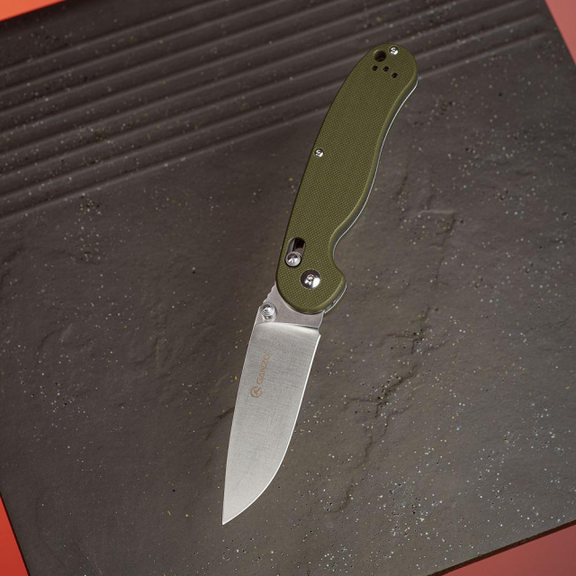 Рукоятка данной модели оформлена с помощью современного композитного материала – пластика G10. Он характеризуется большой долговечностью, прочностью и стойкостью к механическим или химическим воздействиям. Доступные цвета для ножа Ganzo 727M - оранжевый, камуфляжный, черный и темно-зеленый. Также важно сказать, что на рукоятке предусмотрена клипса для страховочного закрепления ножа при переноске и отверстие для протяжки темляка.
