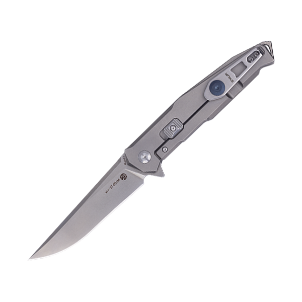 Рукоятка ножа изготовлена с использованием материала TC4. Это титановая рукоятка, в которой практически отсутствуют выступающие элементы или насечки. Фиксирующий замок Frame lock имеет предохранительную систему Beta Plus и съемный наконечник. Он препятствует истиранию, деформации и заедания от контакта двух металлов. Односторонняя съемная клипса ножничка имеет пластинчатой конструкцией. Также она оснащена стопором контрастного цвета, за счет которого исключается риск случайного соскальзывания. Материалом проставки рукоятки является титан. Проставка выступает за рукоятку сквозным отверстием для всевозможных шнурков, карабинов и веревок.