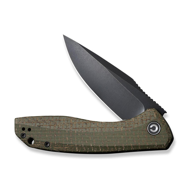 Описание складного ножа Civvi Baklash C801KМодель Civvi Baklash – это элегантный нож, предназначенный для ежедневной носки. Нож стандартных размеров, длина в разложенном виде составляет 207 мм. При этом весит чуть больше 100 г. Благодаря особенностям конструкции удалось сбалансировать размеры и вес ножа для максимально комфортного использования.Лезвие дроп-поинт шириной 3 мм, обеспечивающее хороший запас прочности. Вогнутые спуски и фальшлезво позволили убрать излишки металла, поэтому выглядит лезвие очень изящно и красиво выполняет даже очень сложные задачи. Тонкий усиленный кончик хорошо подходит для деликатных работ. Изготовлено лезвие из нержавеющей молибден-ванадиевой стали 9Cr18MoV, которая закаленная к твердости 58-60 HRC. Таким образом, обеспечивается отменная коррозионная стойкость и хорошая поддержка остроты кромки.Шариковые подшипники из нержавеющей стали в осевом узле позволяют быстро и легко раскрыть нож одним нажатием на флиппер. Фиксация ножа возможна как в сложенном, так и в рабочем положении с помощью надежного и проверенного замка Liner Lock.Основа ручки - скелетонизированные лайнеры, благодаря отверстиям удается значительно облегчить конструкцию ножа с сохранением всей необходимой прочности. Накладки выполнены из стеклотекстолита G-10 с текстурированной поверхностью, это обеспечивает надежное сцепление с ладонью.Двухсторонняя клипса глубокой посадки надежно фиксирует нож в кармане.Особенности:лезвие с превосходной коррозионной стойкостью;текстурированный материал ручки G10 с накладкой из углеродного волокна обеспечивает надежный захват и легкость конструкции;двухсторонняя карманная клипса;шариковые подшипники позволяют без дополнительных усилий раскрывать нож с помощью флиппера.