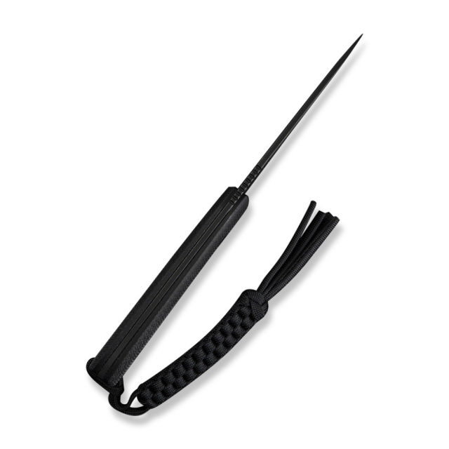 Глубокая подпальцевая выемка на рукояти с четким упором под указательный палец предотвращает соскальзывание ладони на лезвие. Закругленные края рукоятки исключают точки давления, позволяя работать в течение длительного времени без наминания руки. В хвосте рукоятки закреплено темляк с паракорда.