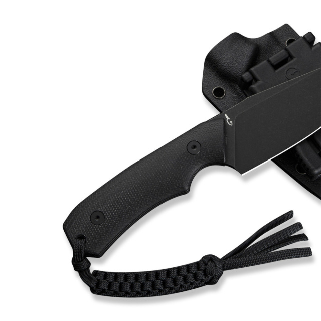 Клинок из нержавеющей стали Sandvik 14C28N. Это высококачественная шведская марка с высокой коррозионной стойкостью и твердостью 58–60 HRC. Металл легок в обслуживании, а отделка методом галтирования с черным покрытием скрывает отпечатки пальцев.