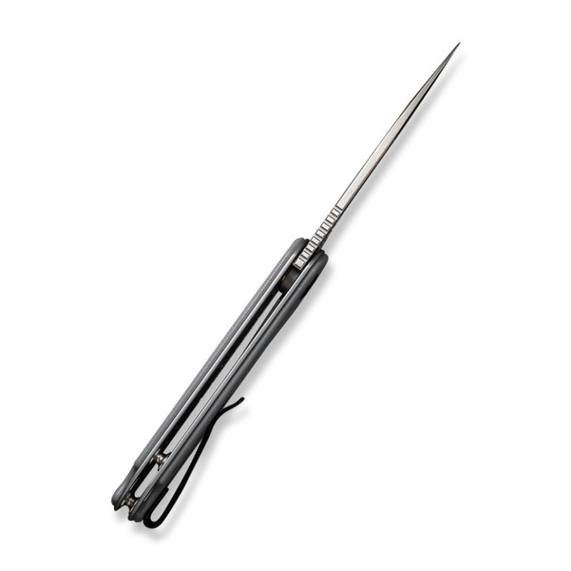 С правой стороны рукоятки есть черная клипса из стали. Вместе с ней складной нож весит 82 г.
